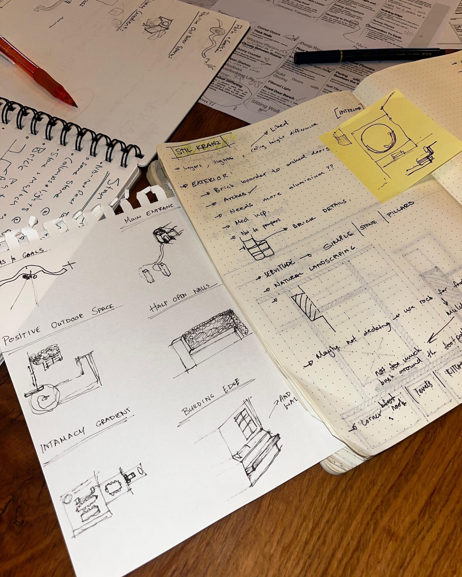 Her first sketches include the initial shape and configuration of the house, but these aren’t set yet.